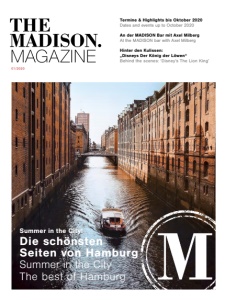 Summer in the City! Die schönsten Seiten von Hamburg Summer in the City The best of Hamburg 01/2020 Termine & Highlights bis Oktober 2020 Dates and events up to October 2020 An der MADISON Bar mit Axel Milberg At the MADISON bar with Axel Milberg Hinter den Kulissen: „Disneys Der König der Löwen“ Behind the scenes: ‘Disney’s The Lion King’