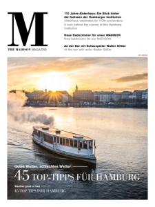 01/2022 THE MADISON MAGAZINE M 110 Jahre Alsterhaus: Ein Blick hinter die Kulissen der Hamburger Institution Alsterhaus celebrates its 110th anniversary: A look behind the scenes of this Hamburg institution Neue Badezimmer für unser MADISON New bathrooms for our MADISON An der Bar mit Schauspieler Walter Sittler At the bar with actor Walter Sittler Gutes Wetter, schlechtes Wetter 45 TOP-TIPPS FÜR HAMBURG Weather good or bad 45 TOP TIPS FOR HAMBURG