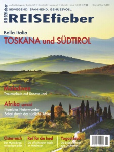 Herbst und Winter 01/2023 www.Reisefieber-Magazin.de • D eutschland 5,90 € • Österreich 6,50 € • Luxemburg 6,50 € • Italien 6,50 € • Schweiz 11,00 CHF • B 91138 REISEfieber BEWEGEND. SPANNEND. GENUSSVOLL. REISEfieber TOSKANA und SÜDTIROL Bella Italia Namibias Naturwunder Safari durch das südliche Afrika Afrika spezial Traumurlaub auf Soneva Jani Malediven Der Murradweg verzaubert jeden Österreich Die elf schönsten Inseln im Mittelmeer Reif für die Insel Die besten Retreats zum „Auftanken“ Yogaurlaub